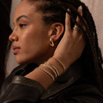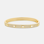 This stylish bangle is the perfect way to elevate any outfit. Its oval shape is adorned with baguette stones surrounded by pave stones for a look of elegance and glamour. Wear it alone for a subtle statement, or in a stack for eye-catching sparkle.