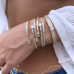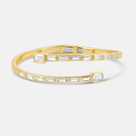 This stunning Baguette Wrap Bangle features eye-catching baguette stones around the circumference for a sparkling, luxurious look. The hinge makes it easy to put on and take off, making it an ideal accessory for any occasion.