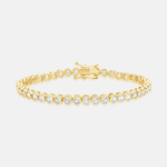 This Classic Bezel Set Tennis Bracelet provides timeless elegance with its bezel set 4mm round stones. Its classic and forever design make it the perfect accessory for day or night. With its superior craftsmanship and lasting style, the search for the perfect bracelet is over.