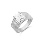 Introducing our Wide Pave Center Stone Band, a must-have for any jewelry collection. Featuring a prong-set emerald center stone, complemented by pave stones encircling half of the band, this stunning statement piece is perfect for any occasion, day or night. Elevate your style with this elegant design.