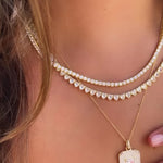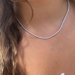 This 2mm Classic Tennis Necklace offers luxury and versatility. Its timeless design is perfect for everyday wear, but can also be elevated for special occasions. It's perfect for stacking and on trend, making it a fashionable choice for any wardrobe. The middle size of the SHYMI tennis necklace collection (1.5mm, 2mm and 3mm).