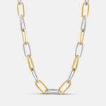 Introducing our versatile two tone Oval paper clip necklace, perfect for layering or wearing on its own. Made for those who love to mix metals, this textured necklace is on-trend and stylish. Its chic design adds a touch of sophistication to any outfit.