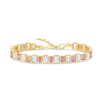 Add a splash of sparkle to any outfit with the Mix Size Emerald Bezel-Set Tennis Bracelet. Its charming alternating emerald stones create a lively, eye-catching look that’s perfect for everyday wear. Whether you're dressing it up or keeping it casual, this bracelet brings a playful pop of color and elegance wherever you go.
