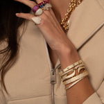 This stylish pave open claw cuff is perfect for those who want to make a statement.  This cuff features a claw-like design that is covered in sparkling pave crystals, adding a touch of glamour to any outfit.  No closure needed! Easy to put on yourself.  This cuff is perfect for casual or formal occasions on it's own or stacked!