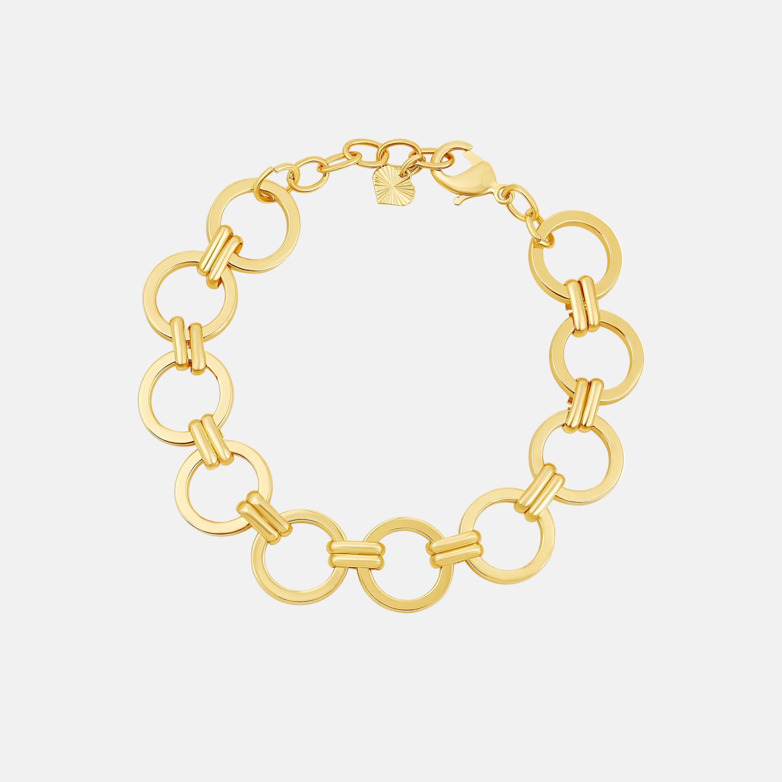Make a bold move with this striking round link statement bracelet that commands attention from every angle. The geometric design features perfectly spaced round links separated by sleek dual bars, creating an architectural vibe that's utterly captivating. Versatile enough to shine solo or layer with your favorite pieces, this necklace transitions seamlessly from day to night—whether you're heading to the office or hitting the town. It's the kind of statement piece that becomes an instant favorite, adding instant edge and sophistication to any ensemble.