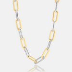 Introducing our versatile delicate Two Tone Paper Clip Necklace, perfect for layering or wearing on its own. Made for those who love to mix metals, this textured necklace is on-trend and stylish. Its chic design adds a touch of sophistication to any outfit.
