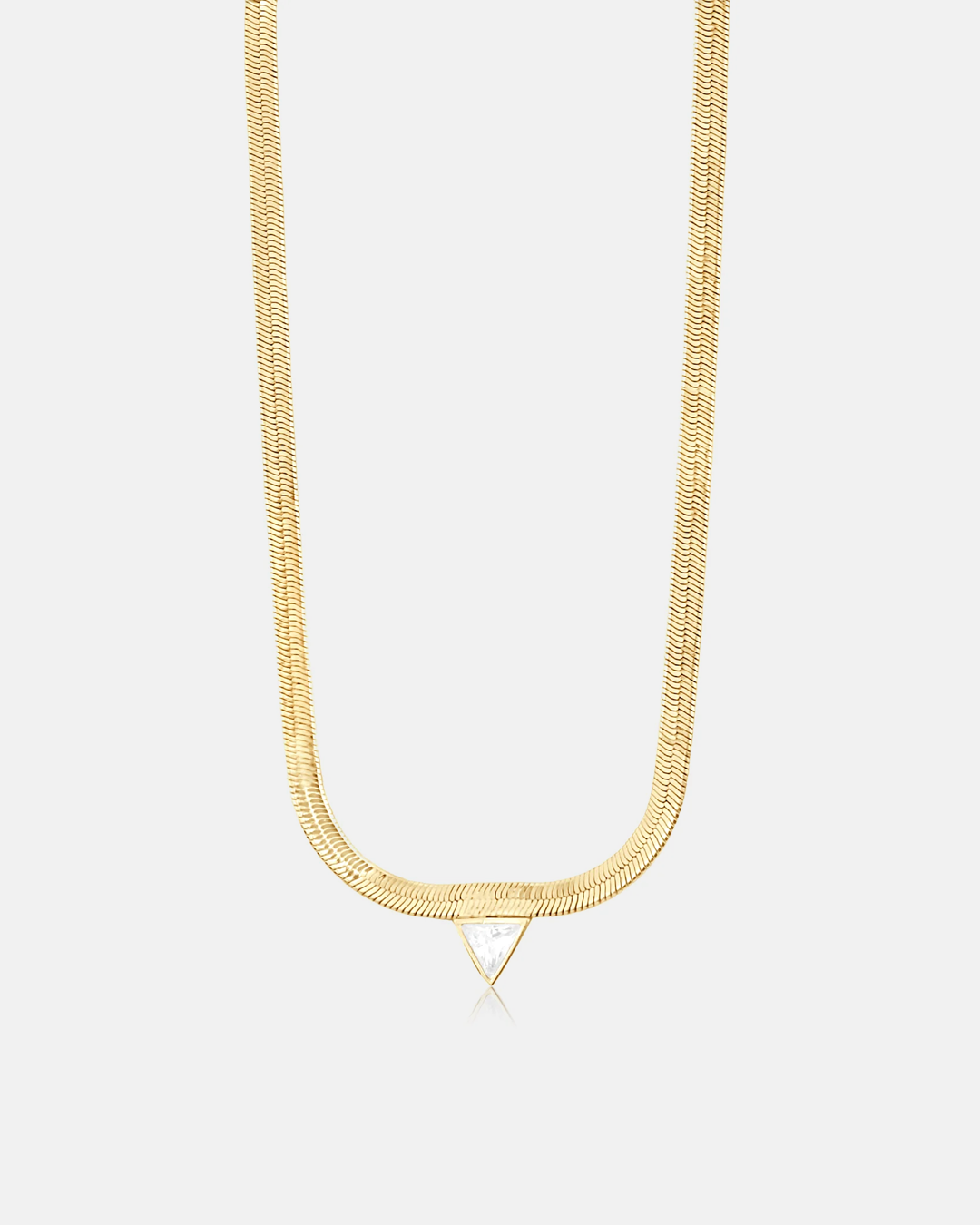 Add a touch of charm to your look with this playful herringbone pendant featuring a sparkling stone. The elegant herringbone chain pairs perfectly with the bright stone, creating a fun yet stylish accessory that effortlessly brightens any outfit.