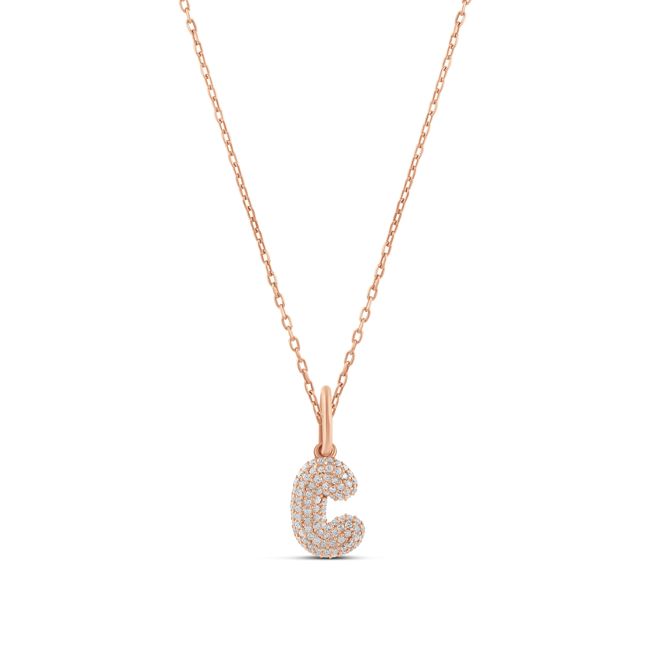 Add a touch of sparkle and personality with the Mini Pave Bubble Initial necklace. Featuring delicate pave stones set in charming bubble-shaped letters, this playful piece lets you wear your initial with a fun, shimmering twist.