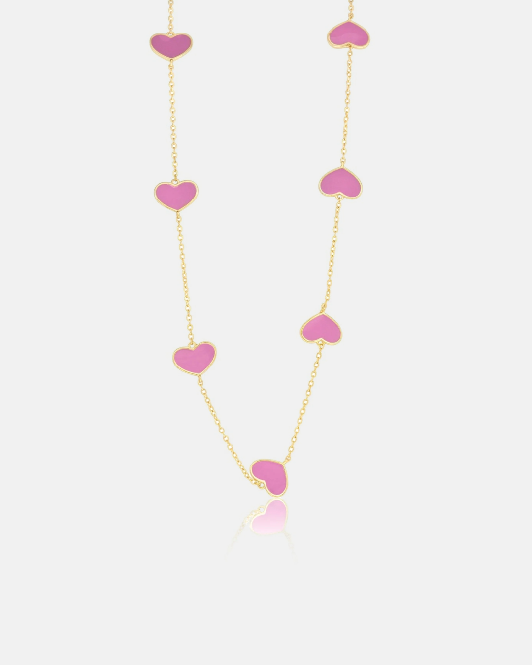 This Multi Heart Enamel Necklace is perfect for individuals who want to elevate their look with a dainty and fun statement piece. Featuring multi-colored hearts in a layering necklace design, this necklace beautifully stands out on its own and looks great when worn with other jewelry.