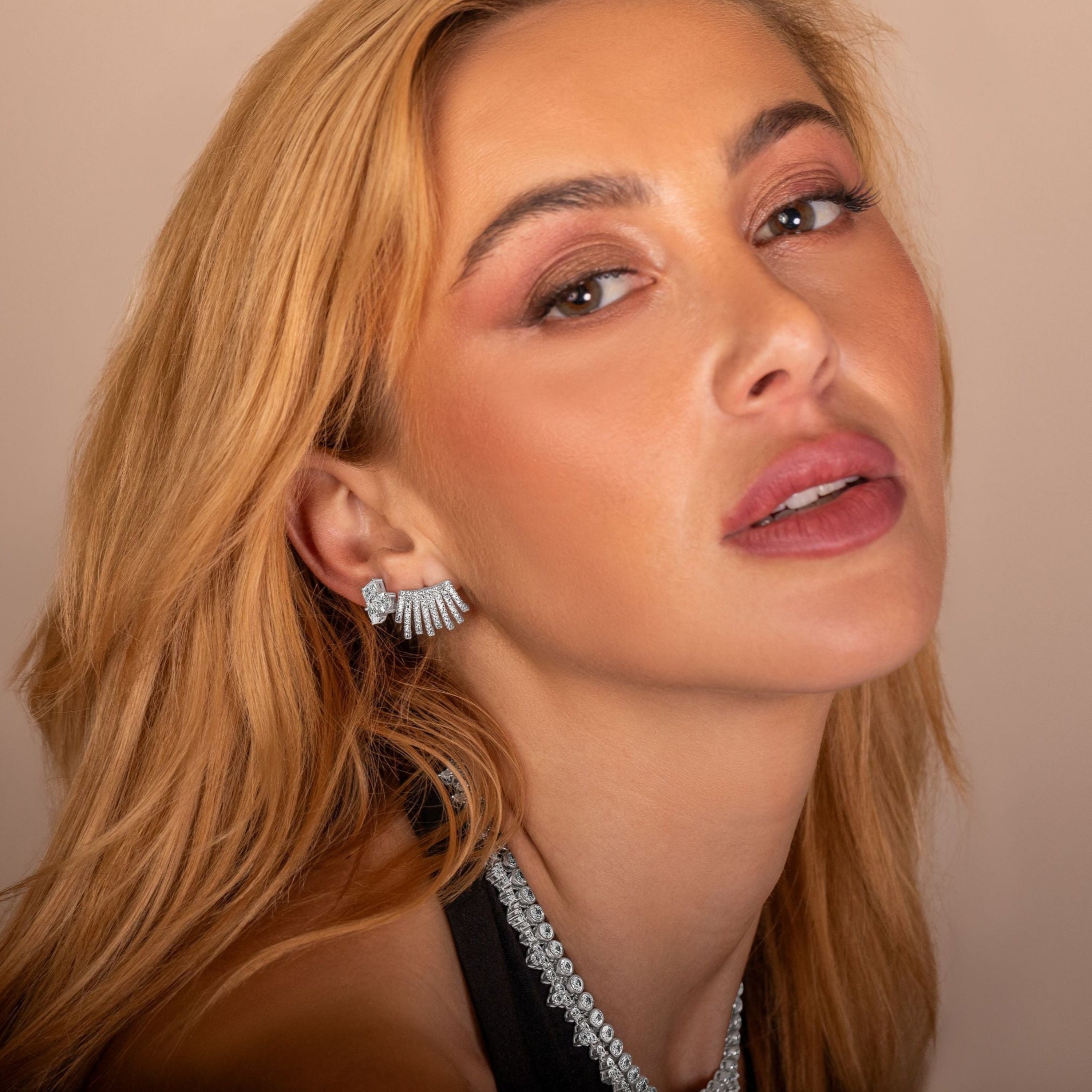 These Pave Caged Huggies feature all pave stones in a caged design. They are super comfortable perfect to wear during the day and glamorous enough for evening wear. With their fashionable design, these huggies will instantly elevate any look and make a bold statement.