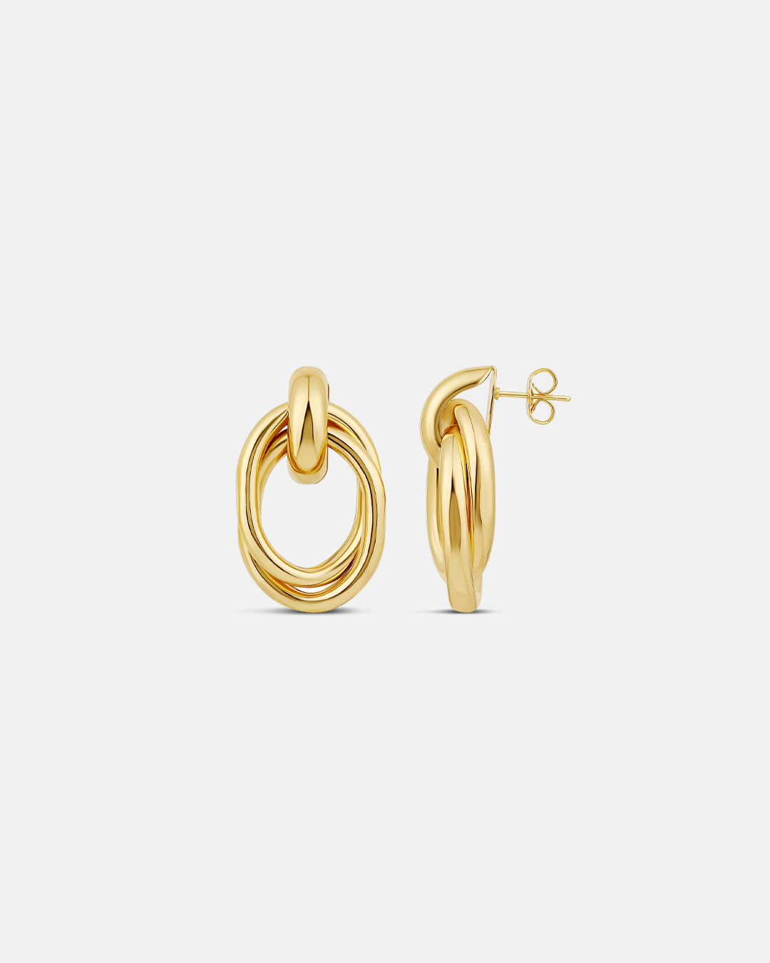 Elevate any outfit, day or night, with our gorgeous and elegant twisted oval drop earrings. These modern drop earrings make a statement and are on trend, adding a touch of drama to your look. Perfect for any occasion, they are the ultimate accessory for a fashionable and polished look.
