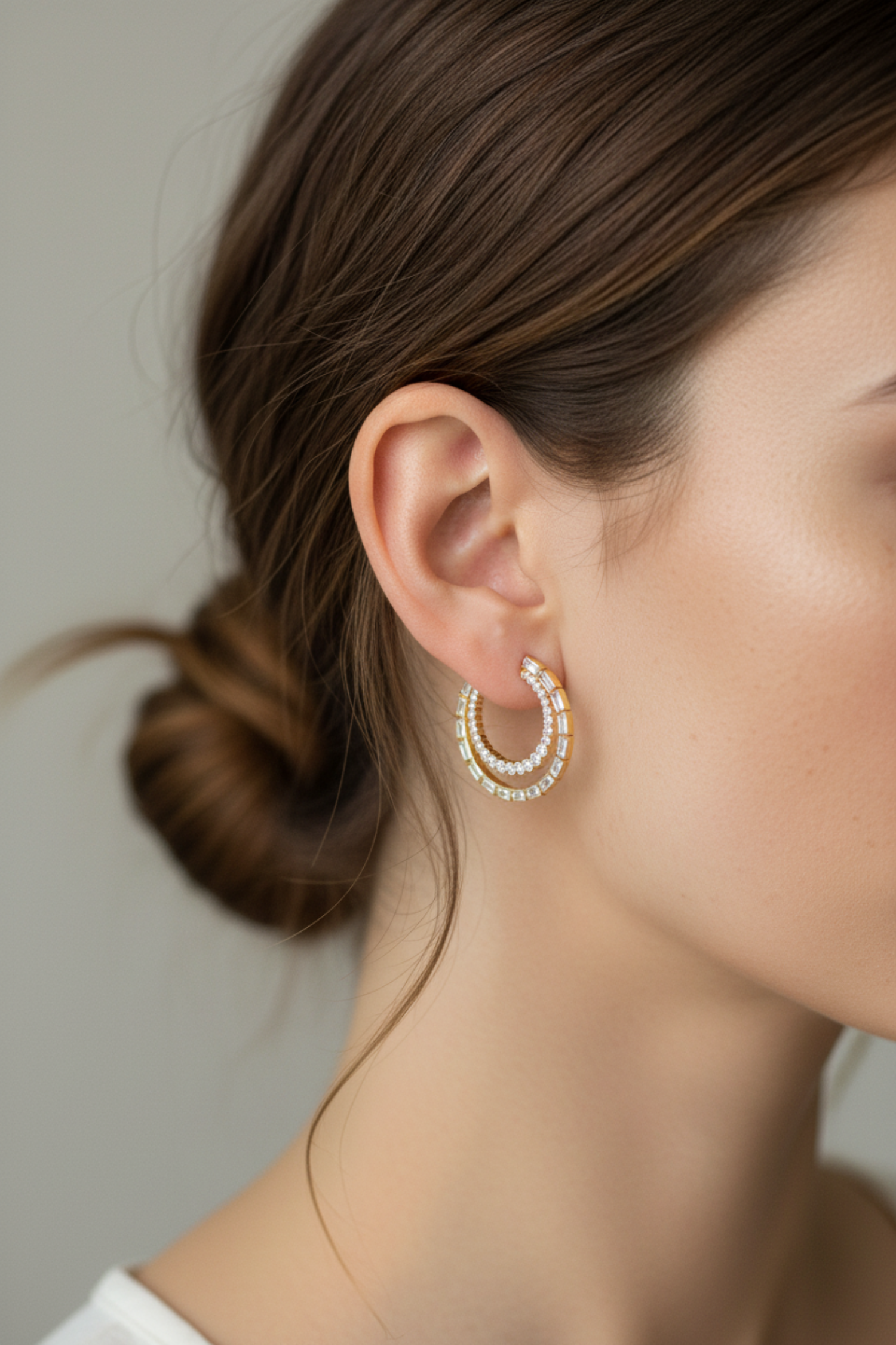 Introducing these gorgeous statement makers! These earrings are the perfect blend of style and classic. These hoop earrings feature a unique and eye catching design combining both round and baguette shape stones. Whether dressing up or down they are sure to elevate any outfit! FINAL SALE