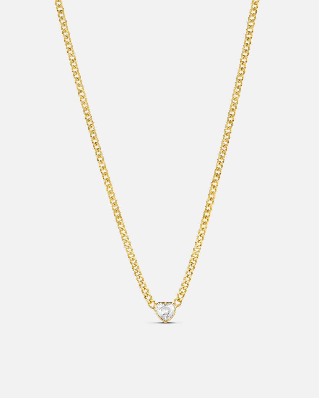 Look sophisticated and stylish wearing the Fancy Shape on a Curb Chain. Available in 4 shapes (heart, pear, emerald and round) for added versatility, each stone is set on a curb chain for a minimalist design. Great for creating a contrast of materials and stones. Looks simply beautiful on its own or warn with other layers.