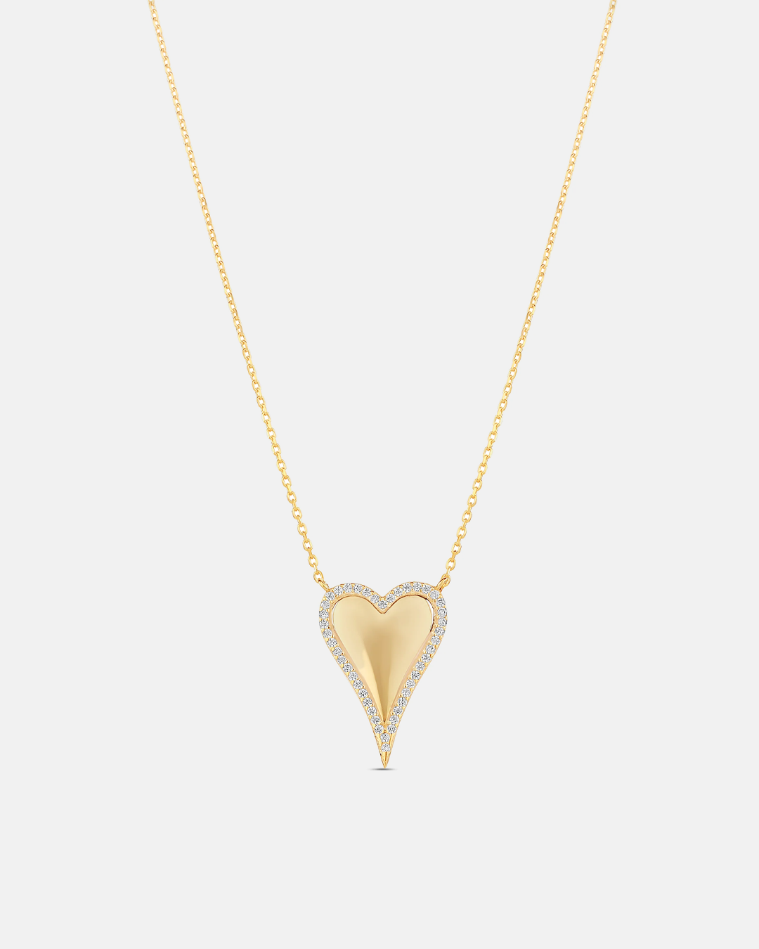 Make each day or night special with the Pave Outline Heart Necklace. This beautiful necklace showcases a medium-sized heart with an elegant pave edge, providing a stunning glimmer of gold and eye-catching sparkles. Be sure you will get tons of compliments.