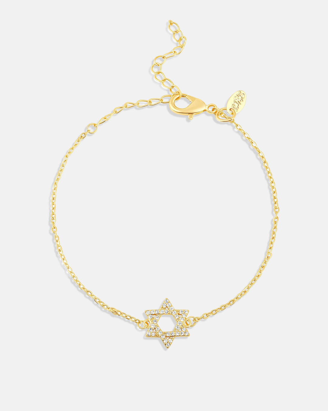 This Pave Star of David bracelet is a gorgeous and dainty accessory that is the perfect size. Carefully crafted with pave stones, this necklace is perfect by itself or layered with other pieces. Elevate your style with this elegant and versatile design.