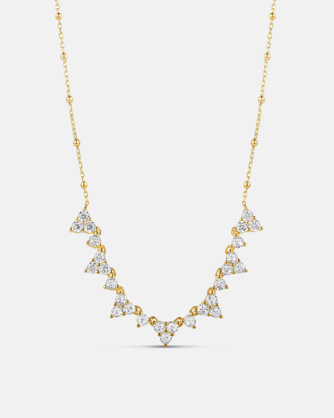 Elevate any look with our stunning Center Cluster Necklace. The delicate chain showcases a cluster of sparkling stones, perfect for adding a touch of evening glam or elevating your daytime style. A must-have accessory for any fashion-forward individual.