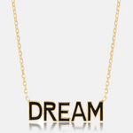 Add a touch of magic to your everyday look with the Dream Name Plate necklace. Featuring a sleek black and gold design, this playful accessory effortlessly complements any outfit while keeping your style uniquely you.