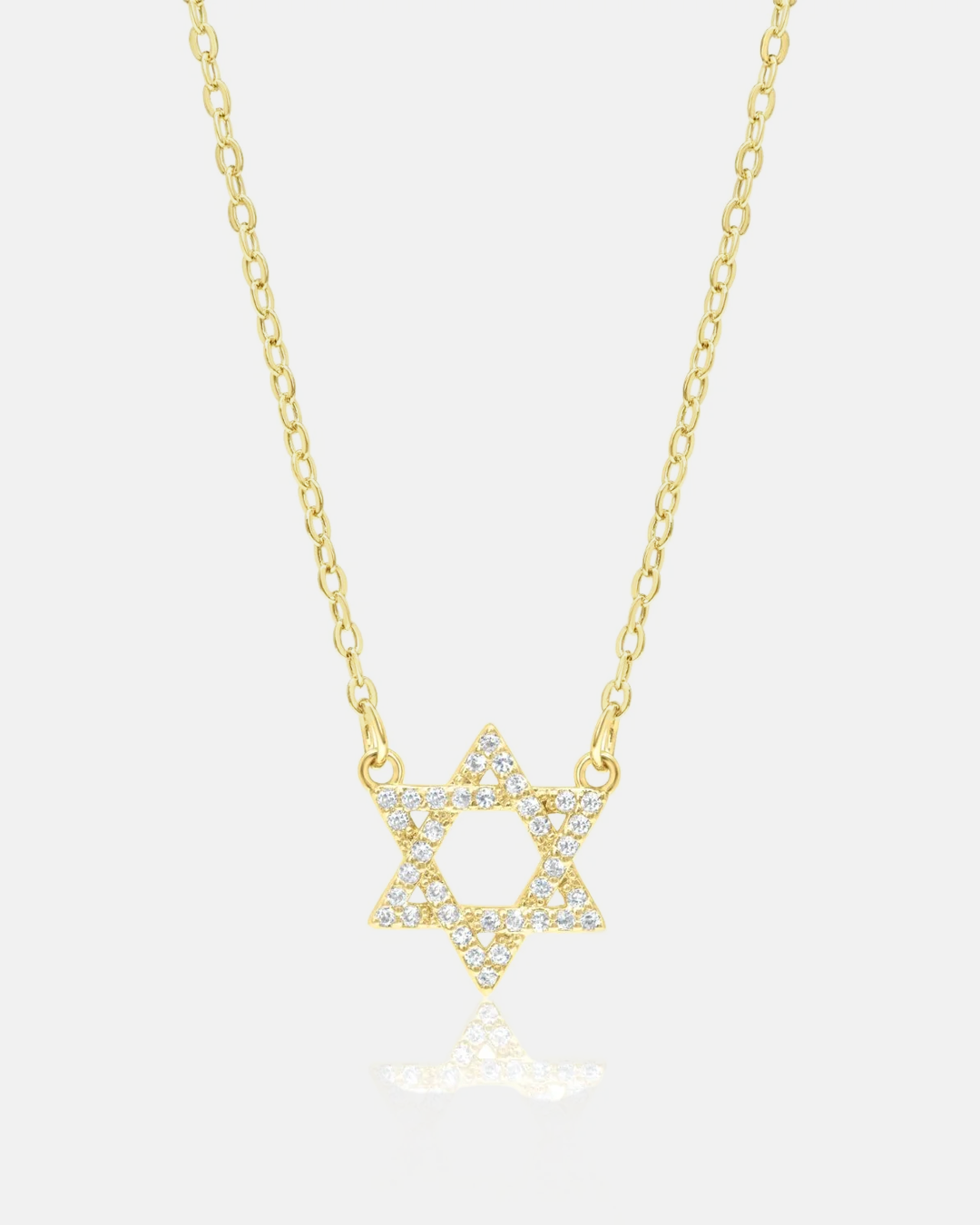 Introducing the Pave Star of David, a gorgeous and dainty accessory that is the perfect size. Carefully crafted with pave stones, this necklace is perfect by itself or layered with other pieces. Elevate your style with this elegant and versatile design.