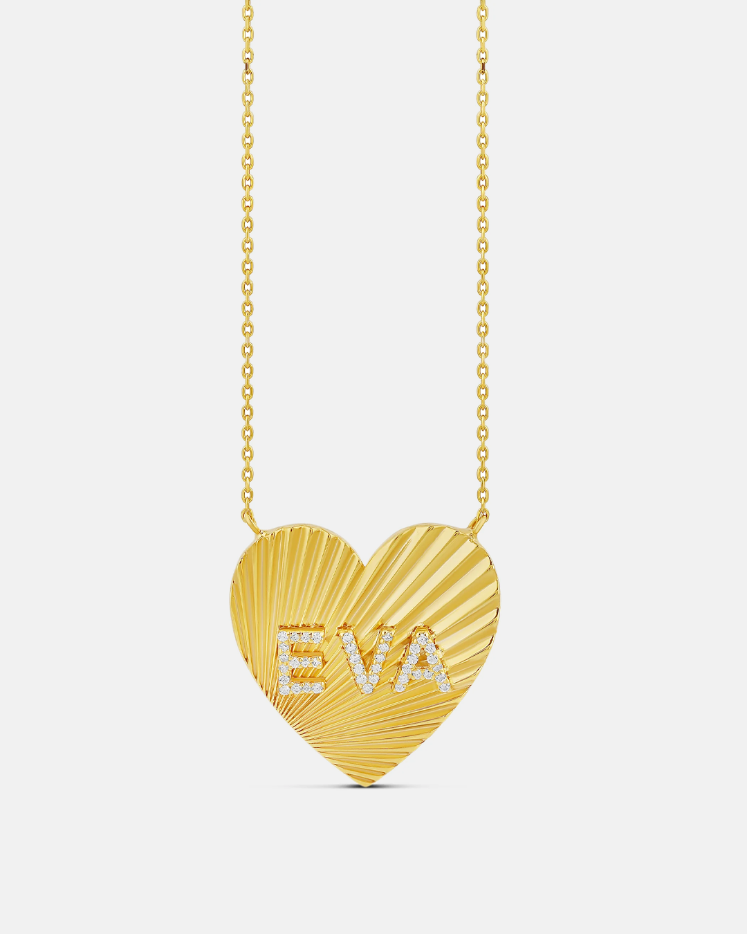 This Personalized Fluted Pave Heart Stationed Necklace brings a playful sparkle to your everyday style. Featuring a fluted heart charm paired with shimmering pave lettering, it lets you showcase a special name or word close to your heart. Perfect for layering or wearing solo, it’s a fun and unique way to express yourself.