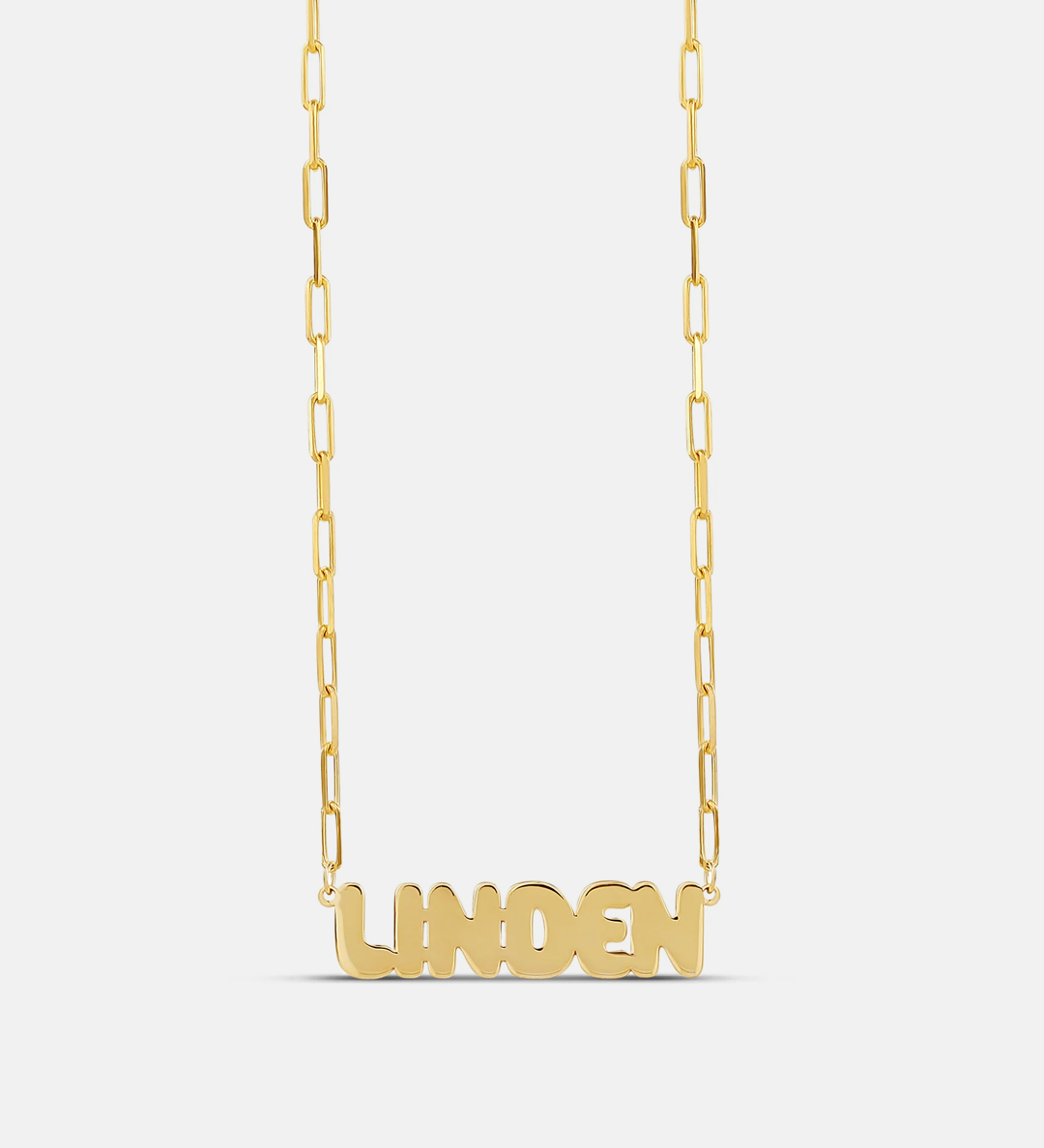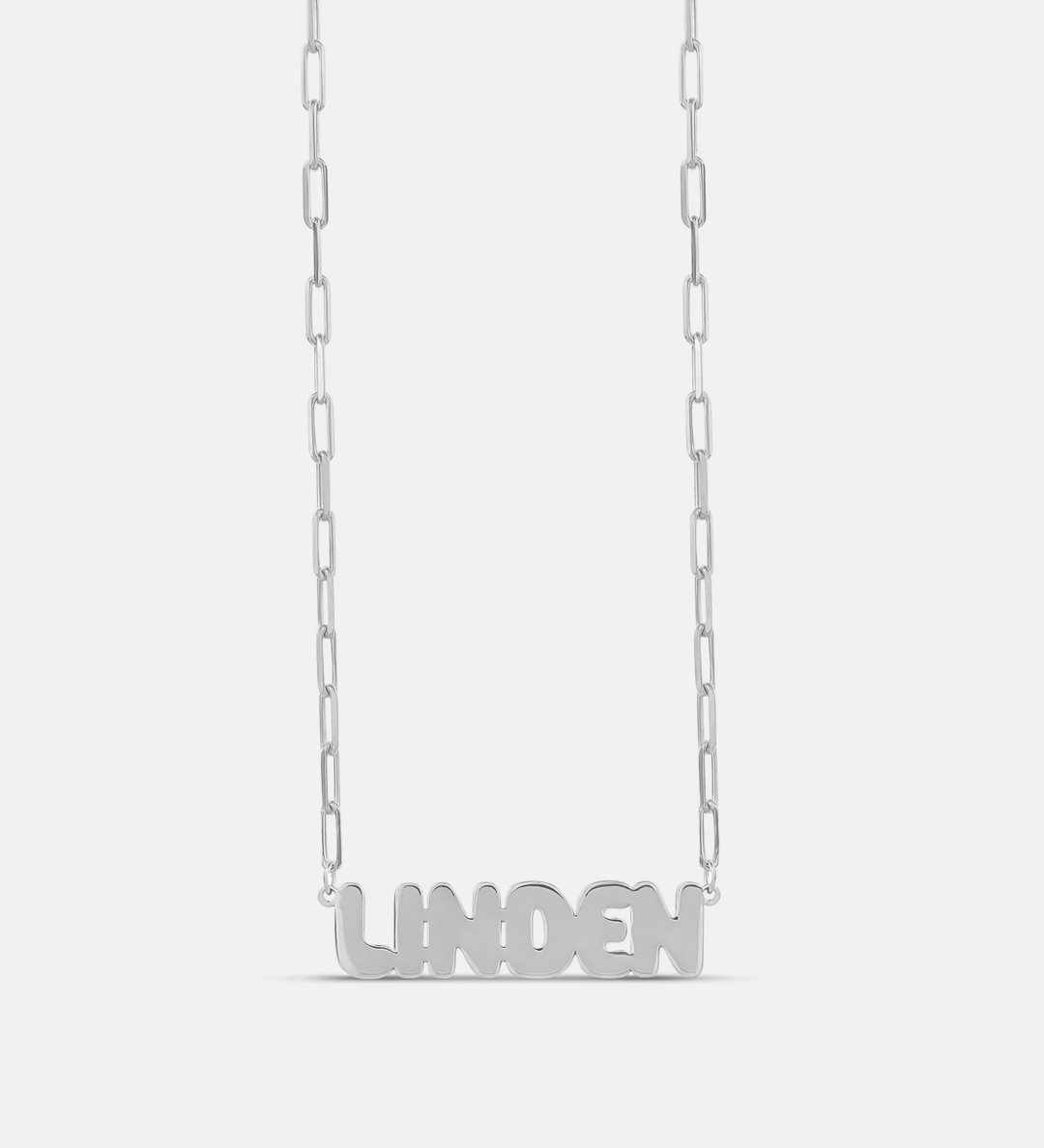 Personalized Bubble Letter Name on Paper Clip Chain Necklace