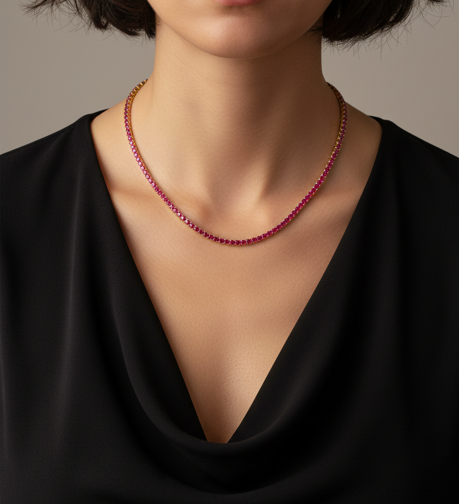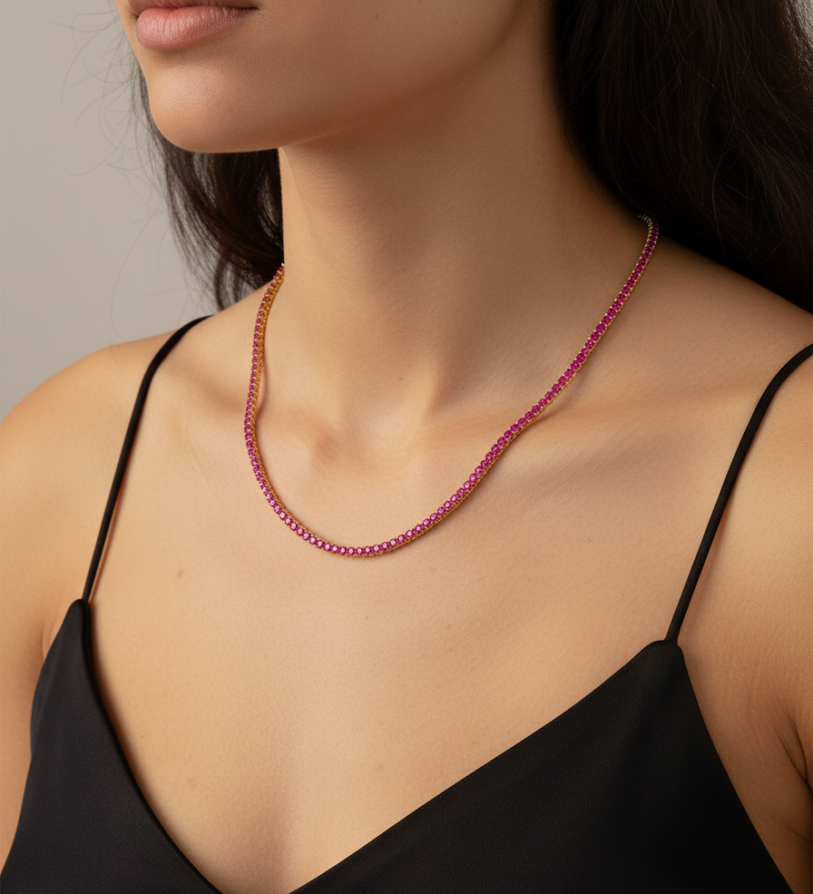 Classic Ruby 2mm Tennis Necklace
