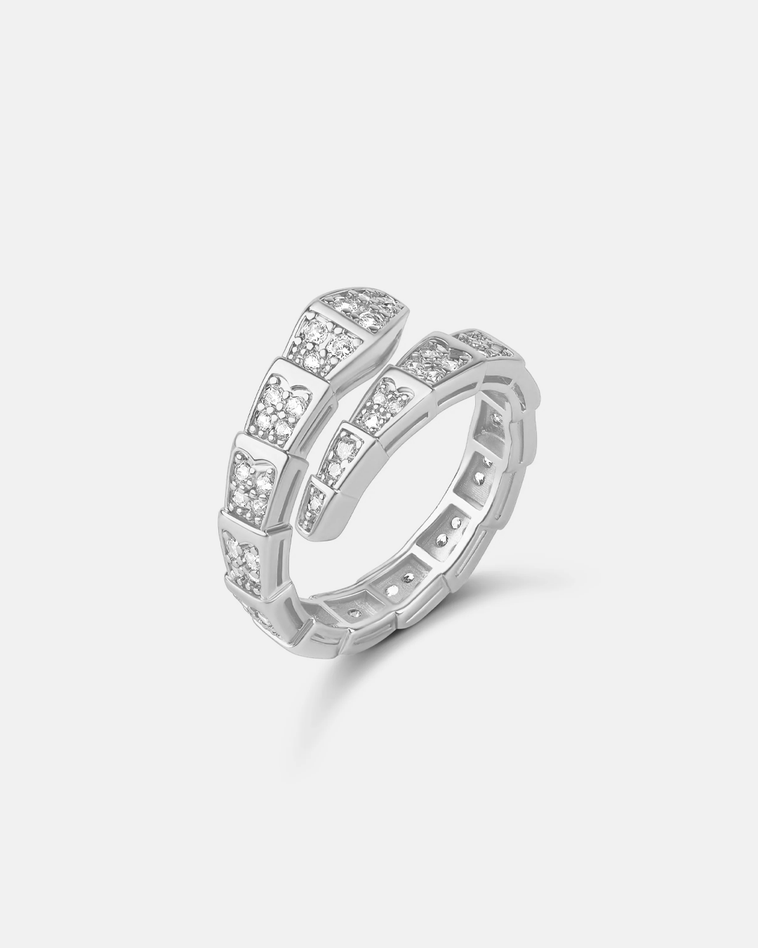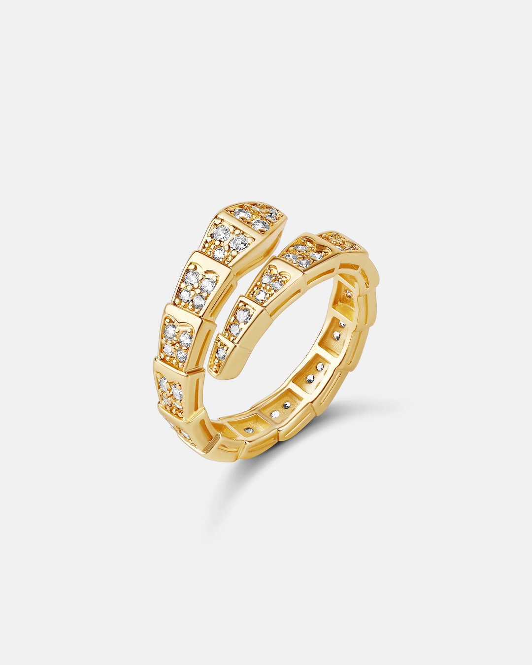 The Chunky Pave Snake Ring features a chic wrap design that elegantly coils around the finger, combining boldness with delicate sparkle. Its pave setting adds a touch of refined brilliance, making this ring a sophisticated statement piece perfect for elevating any ensemble.