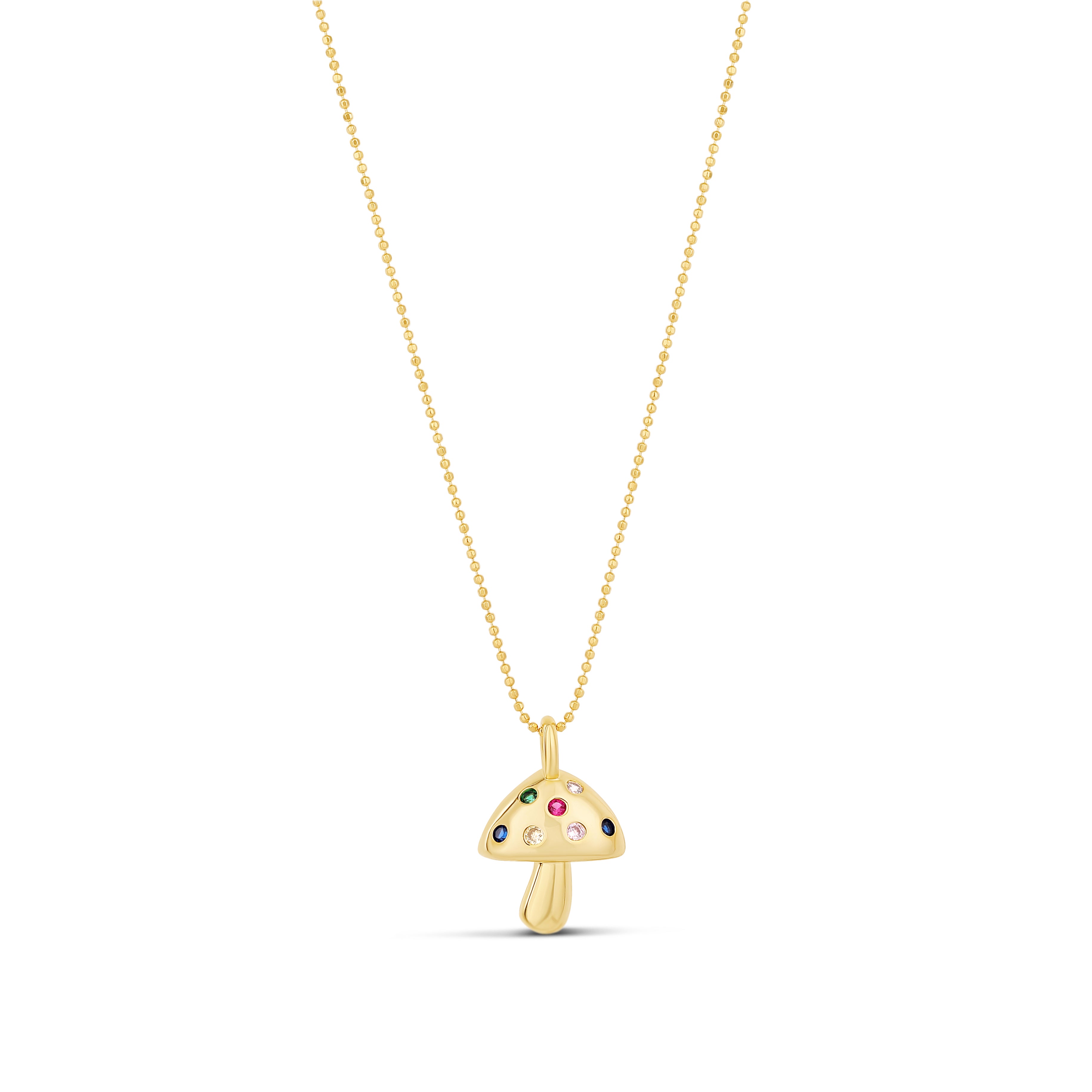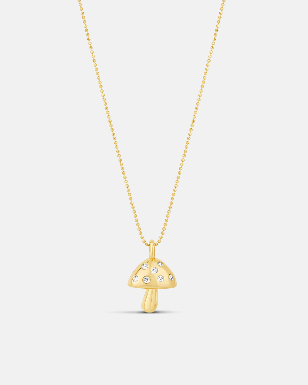Enhance your style with our Mushroom Necklace. Its unique mushroom shape with its puffy look and scattered stones add a touch of elegance to any look. Versatile and perfect for layering, this charm is a must-have for any jewelry enthusiast.