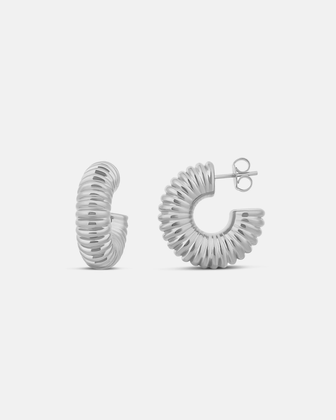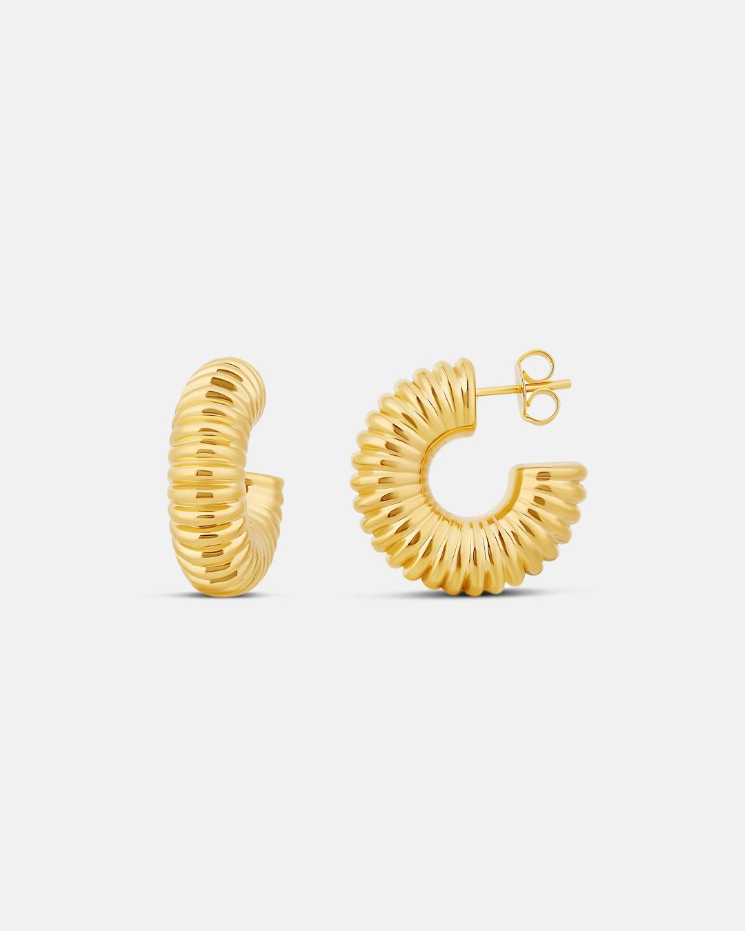Add a dynamic touch to your outfit with these Textured Hoops. Made with a spiral texture, these chunky hoops offer a statement look that can elevate any outfit, both day and night. Perfect for accessorizing, these hoops will be your go-to accessory.