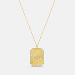 Add a touch of charm with the Fluted Rectangle Evil Eye Medallion Necklace. Its playful fluted edges frame a smooth, rounded disk featuring the iconic evil eye, blending fun design with a hint of mystique. Lightweight and versatile, this necklace is perfect for brightening everyday looks with a whimsical yet meaningful accessory.