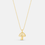 Enhance your style with our Mushroom Necklace. Its unique mushroom shape with its puffy look and scattered stones add a touch of elegance to any look. Versatile and perfect for layering, this charm is a must-have for any jewelry enthusiast.