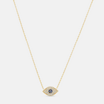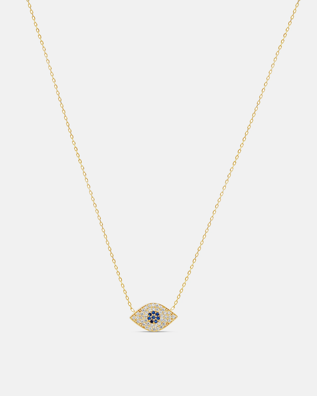 Ward off the bad vibes in style with this classic pave evil eye necklace. Adorned with glittering crystals that frame the iconic eye symbol, it's the perfect blend of protective charm and sophisticated sparkle. Lightweight and versatile, this piece works beautifully as a standalone statement or layered with your favorite chains.