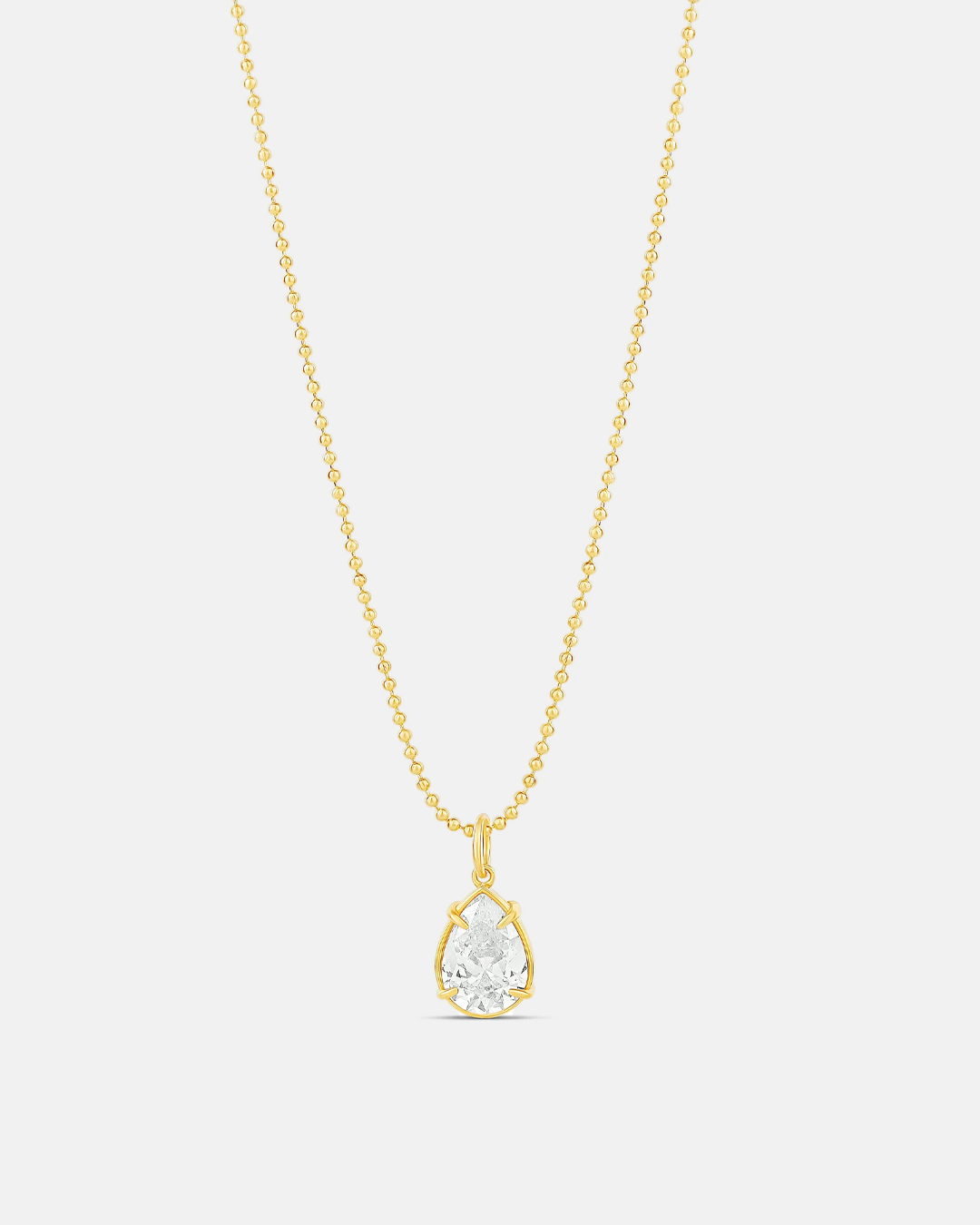 This gorgeous pear-shaped stone necklace, framed with shiny rhodium plating, effortlessly brightens any outfit. Strung on a sleek black cord, it’s perfect for wearing solo to make a subtle statement or layering for a trendy, playful look. Add a touch of sparkle and whimsy to your everyday style with this versatile piece!