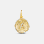 Elevate your jewelry collection with the Personalized Fluted Pave Round Initial Charm. Expertly crafted, this charm features a sleek round design adorned with pave-set stones that add subtle sparkle. Personalize it with a chosen initial to create a meaningful accessory that complements any style with refined elegance. Perfect for layering or as a standout piece, this charm offers both versatility and a personalized touch.