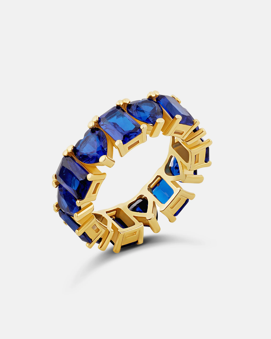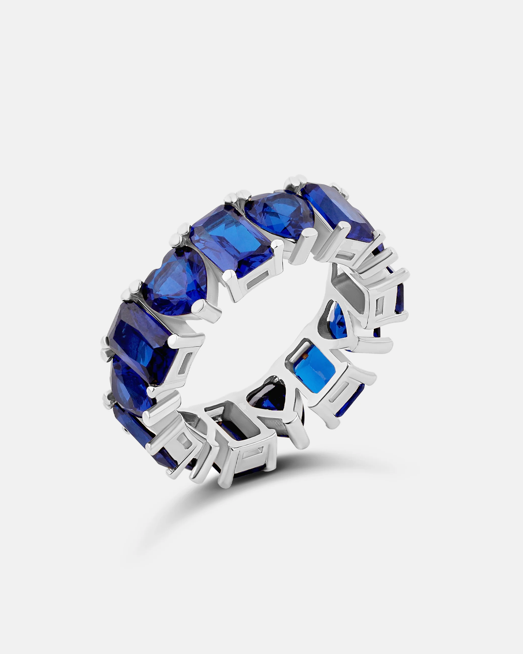 This Heart and Emerald Eternity Band is sure to turn heads. Crafted from high-quality materials, it features striking hearts and emeralds, combining for a unique statement look. Perfect for any special occasion, this statement maker is sure to be a conversation starter.