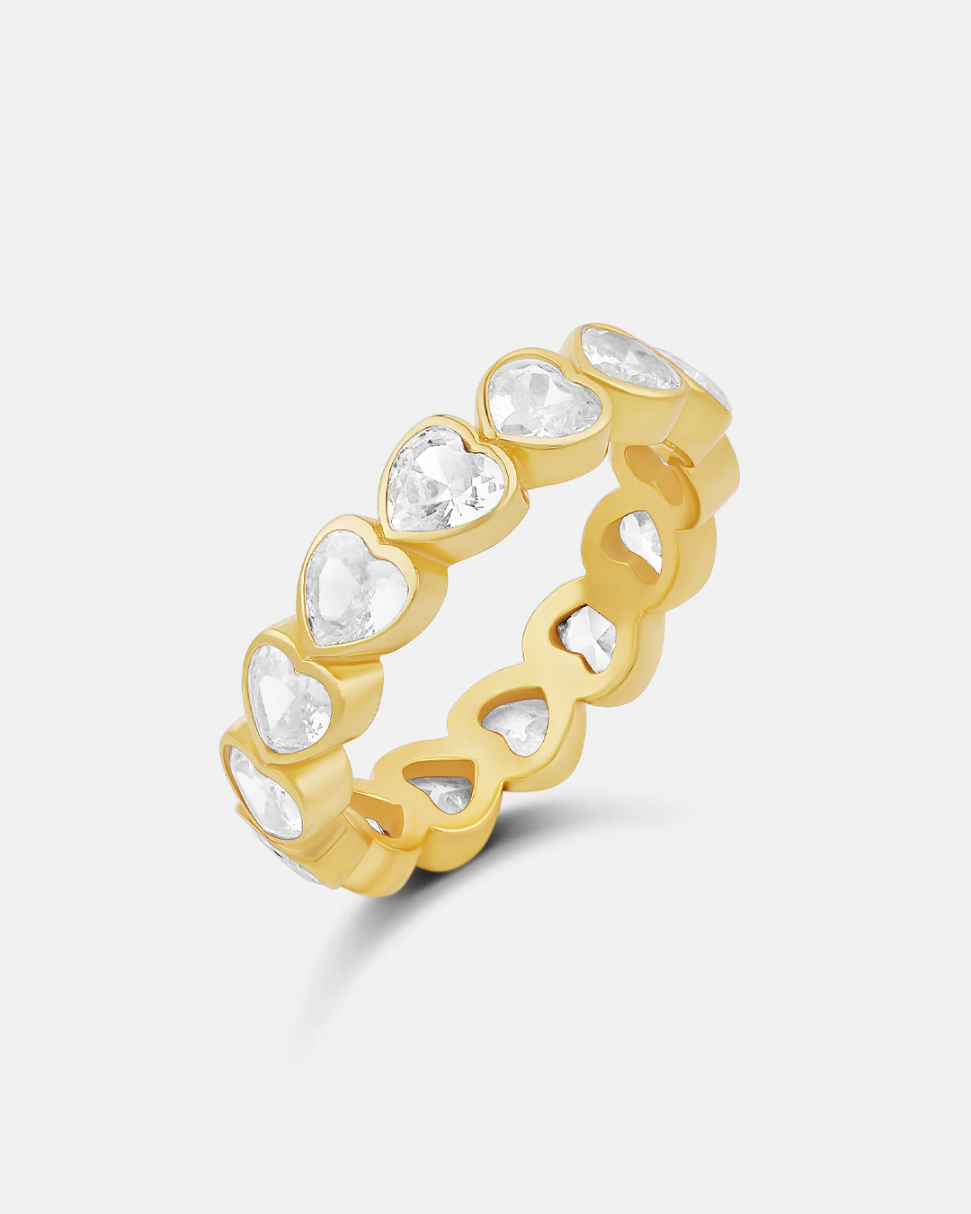 Designed for everyday wear, our Heart Bezel-Set Eternity Band is the perfect accessory to add a touch of elegance to any outfit. Its stunning bezel set hearts wrap all the way around, adding a unique and romantic touch. Wear it alone or stack it for a bold and sophisticated look.