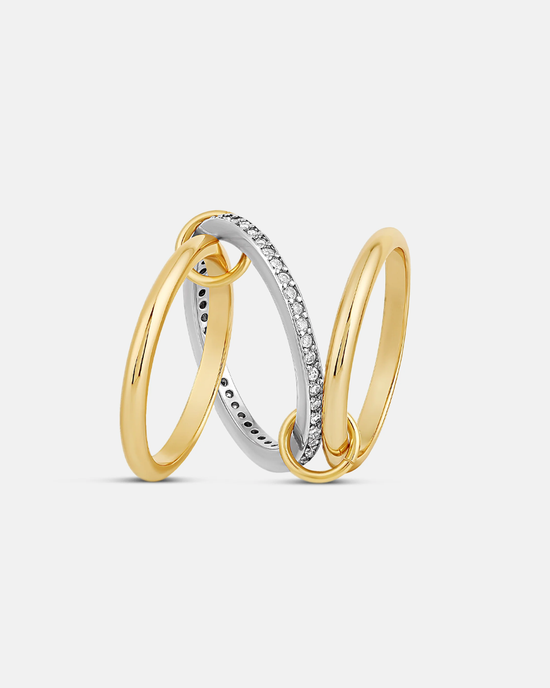 Add a twist to your style with this playful Multi Interlocking Band Ring. Its trendy design features multiple bands that seamlessly connect, creating a fun and eye-catching look. Perfect for mixing and matching or wearing solo, this ring brings a lively touch to any outfit.