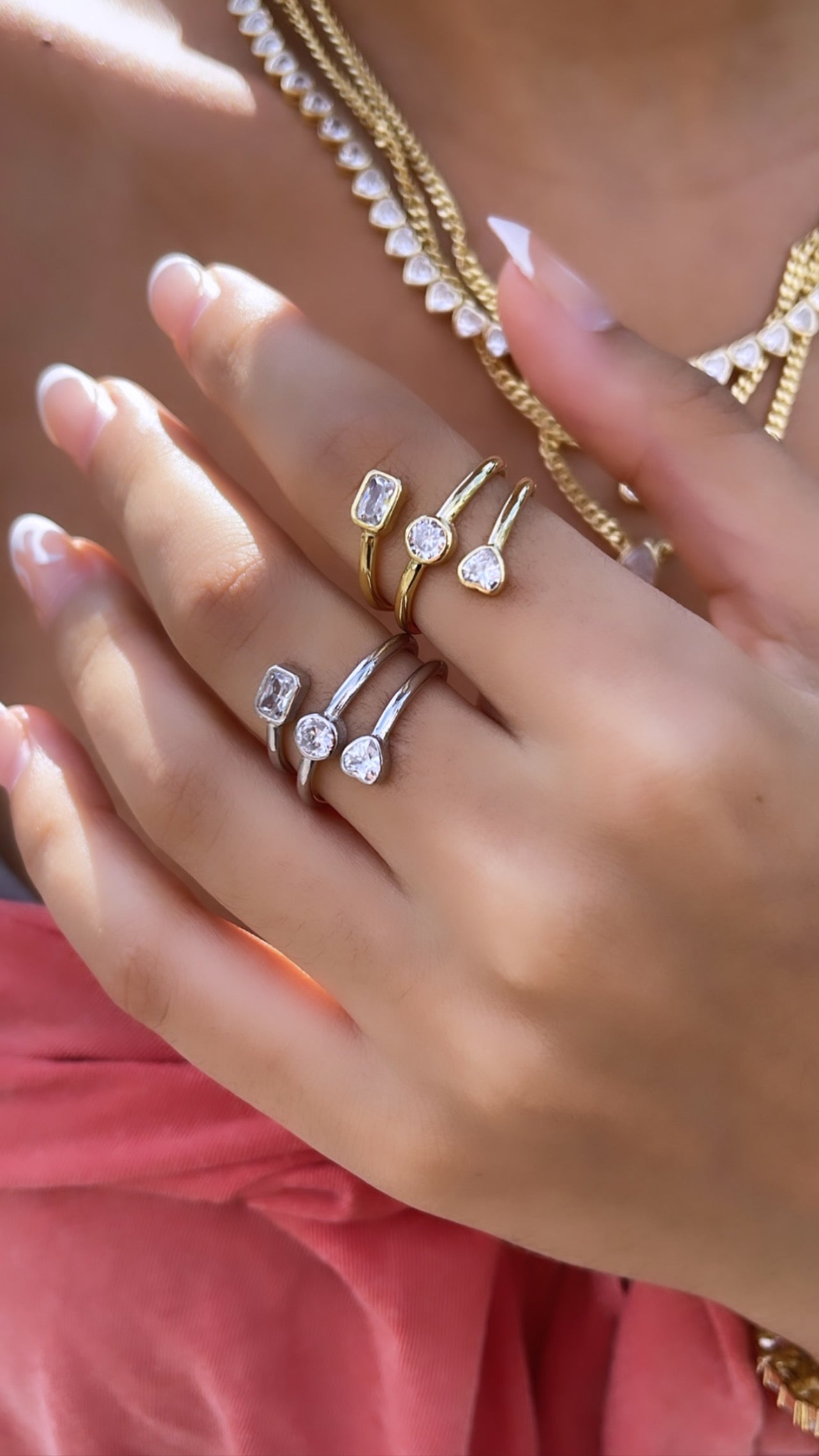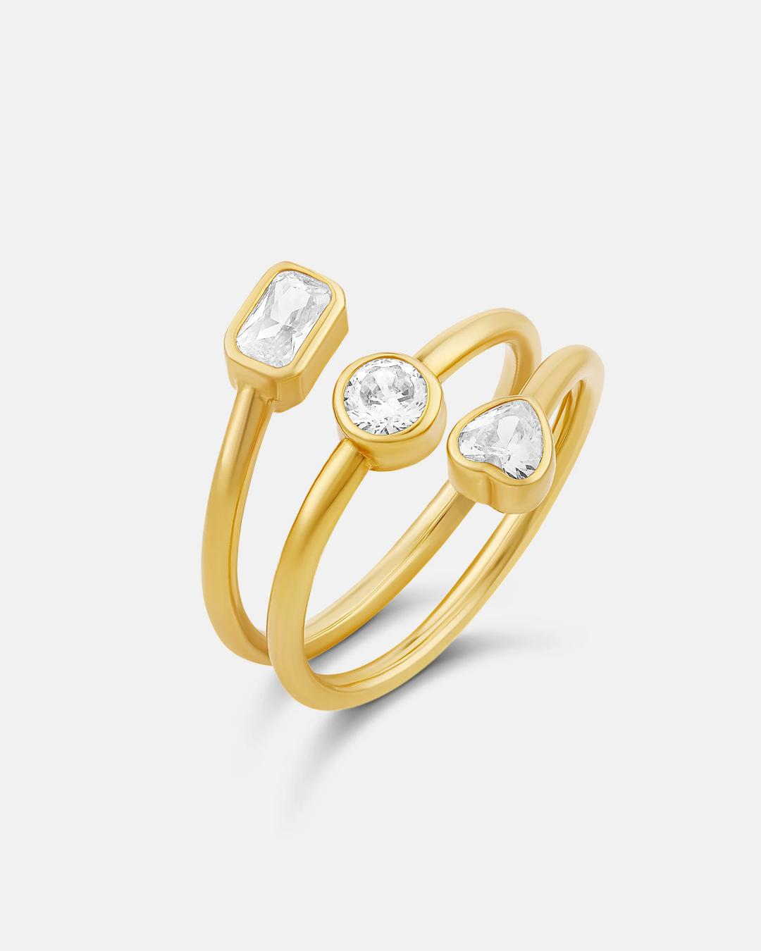 This Multi Shape Trio Statement Ring is perfect for any fashion-forward individual. The 3 fancy spiral shapes are on trend and sure to make a statement, whether worn during the day or night. A must-have accessory for any jewelry collection.