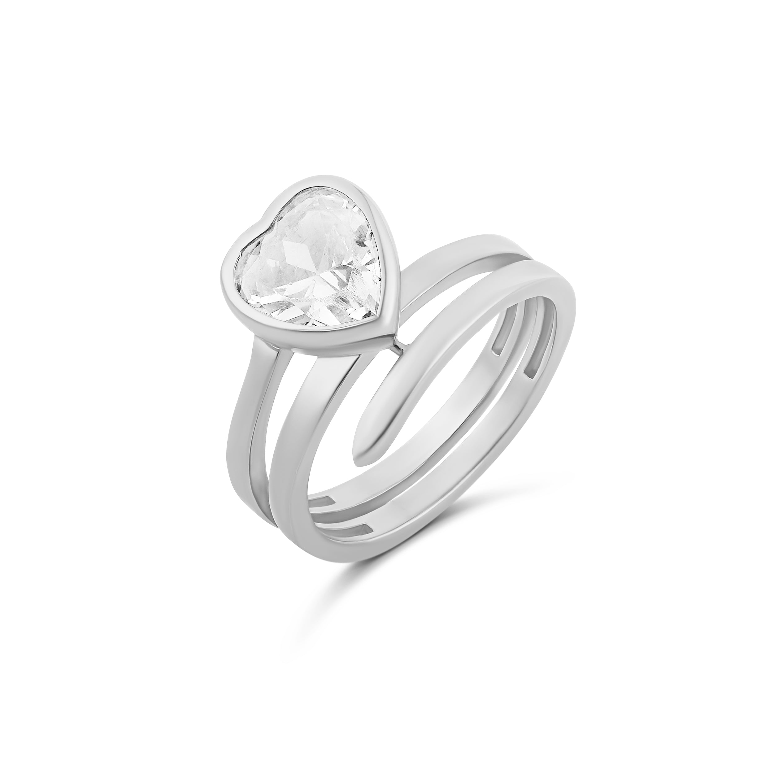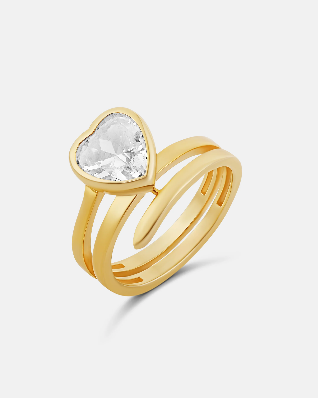 Elevate your look with our stunning Spiral Heart Ring. Featuring a unique spiral design and a bezel set heart stone, this ring is perfect for a night out or adding a touch of elegance to any outfit. Don't miss out on the beauty and versatility of this gorgeous piece.