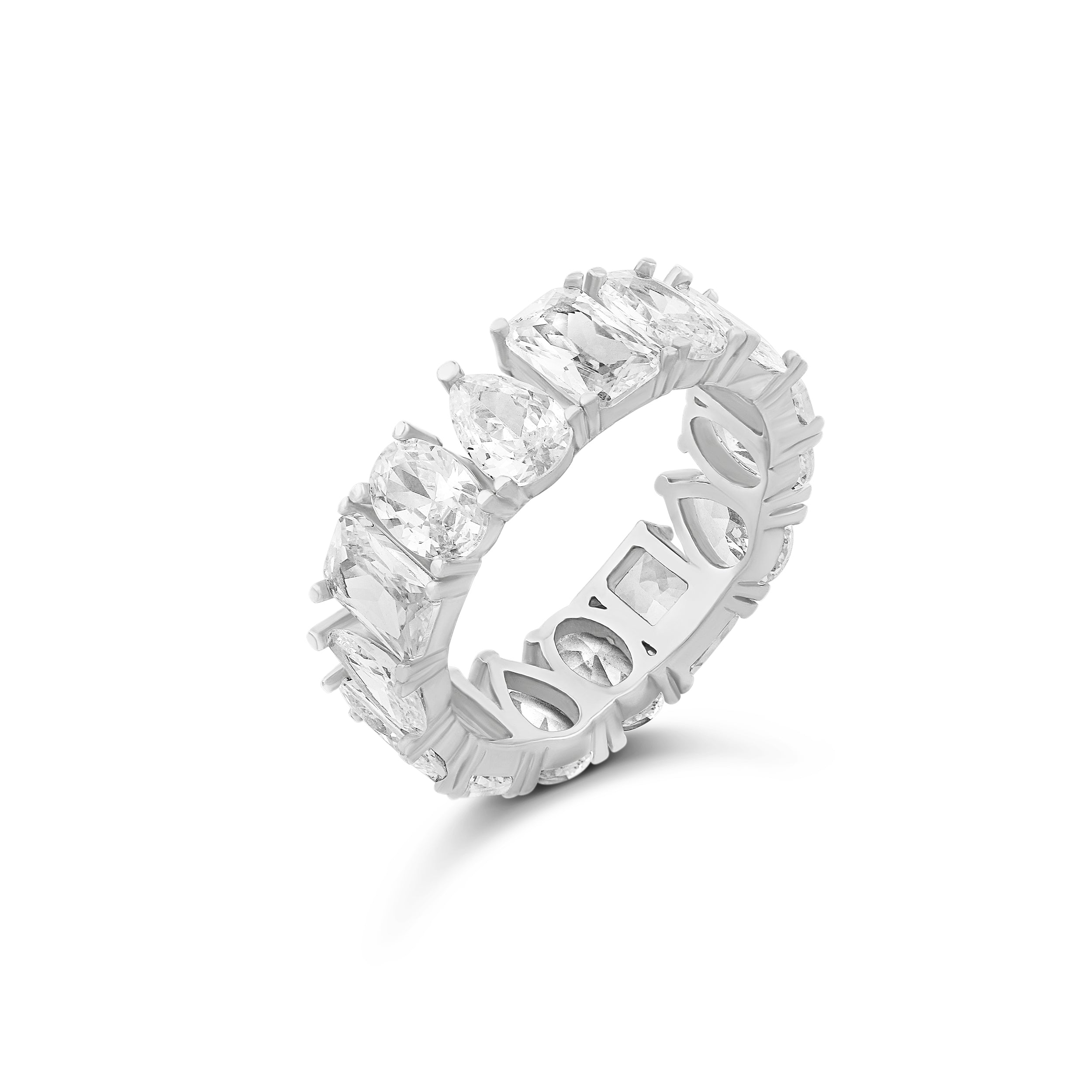 This stunning Fancy Shape Eternity Band makes a bold statement. Crafted with a mix of different shape stones, it is sure to turn heads and captivate admirers. An exquisite addition to any wardrobe, this show stopper brings gorgeous sparkle and sophistication to any look.