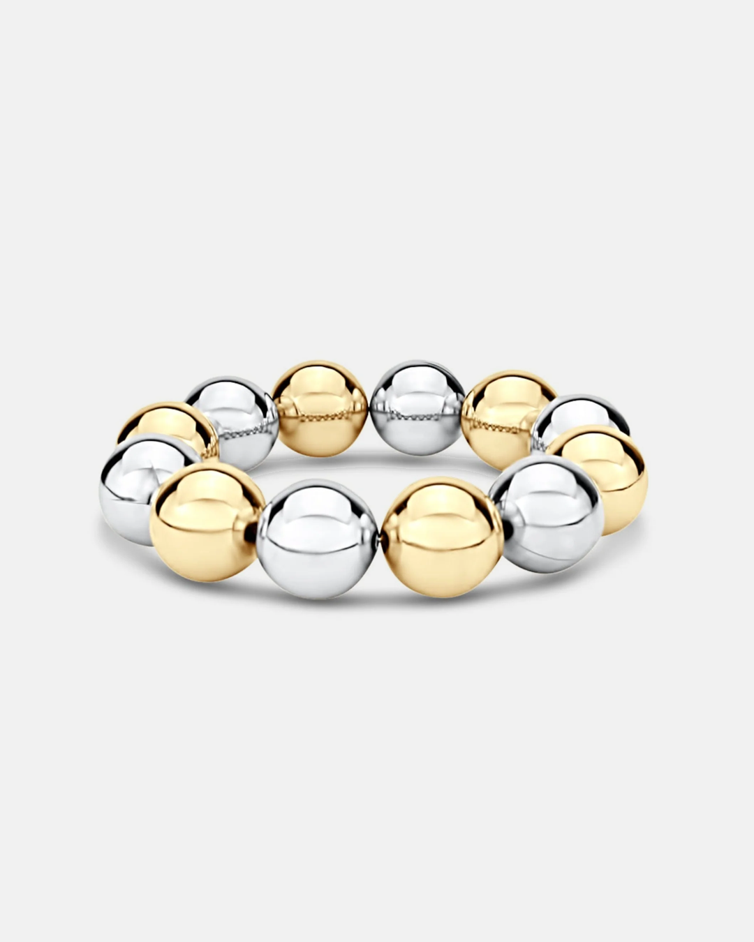 This oversized ball bracelet makes a striking statement that can be worn alone or stacked with other accessories. It elevates any look, day or night.