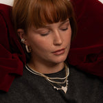 This Triple Mix Shape Pave Ear Cuff offers an easy way to accessorize your look without the need for a piercing! It features three rows of three shapes - heart, emerald, and a pea - that all create a unique shape that sits on the lower part of your ear.