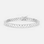 This classic traditional 5mm large stone tennis bracelet comprises an essential part of any jewelry collection. Its sophisticated, timeless style exhibits sparkling cubic zirconia stones in a refined 3-prong setting. Suitable for any special event, or for everyday wear. This bracelet makes a stylish addition to any stack.