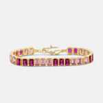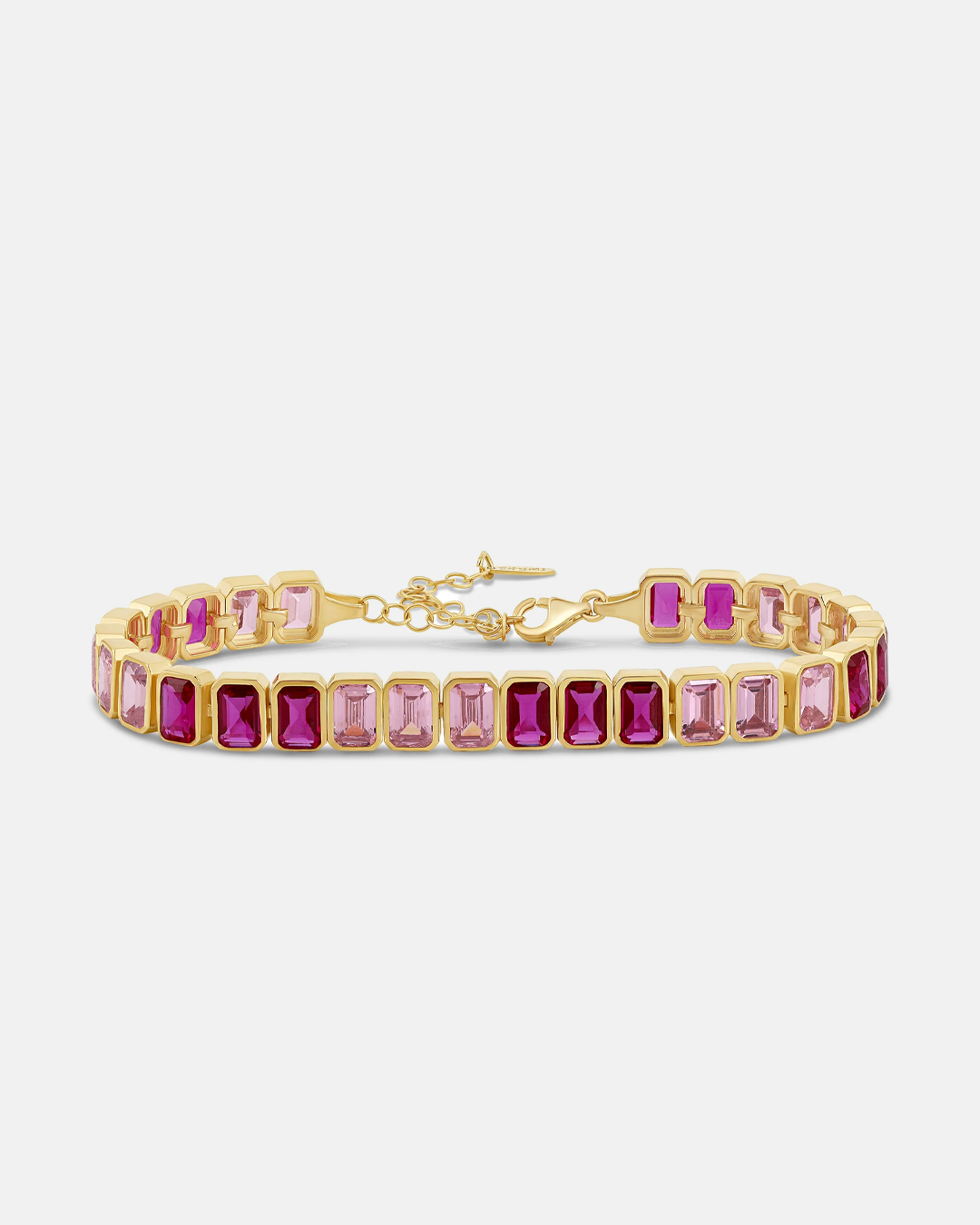 This Bezel-Set Emerald Tennis Bracelet is designed for those who demand sophistication and elegance. Crafted in a show-stopping large bezel set Emeralds, this bracelet has a gorgeous iridescence. A great piece to wear alone for a statement look, or to add a pop of colorful elegance to any stack. Available in pink / gold or green / silver