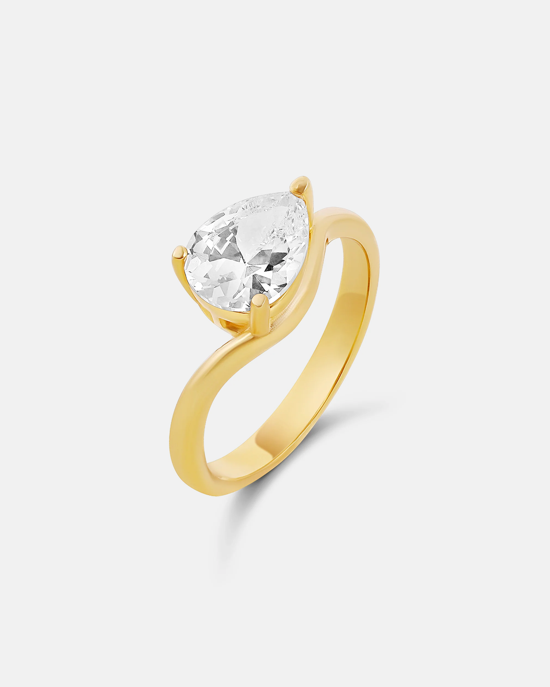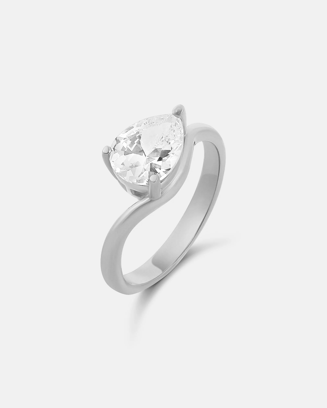 Ride the wave of elegance with this stunning pear shape ring! Featuring a graceful, curved band that flows like water, this piece combines modern flair with timeless sophistication. The luminous pear-cut stone catches light beautifully, making it perfect for everyday sparkle or special occasions. Make waves wherever you go.