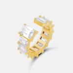 This outrageous and unique emerald shaped statement ring was made to shine and elevate any look.  This ring goes almost all the way around with one larger stone!