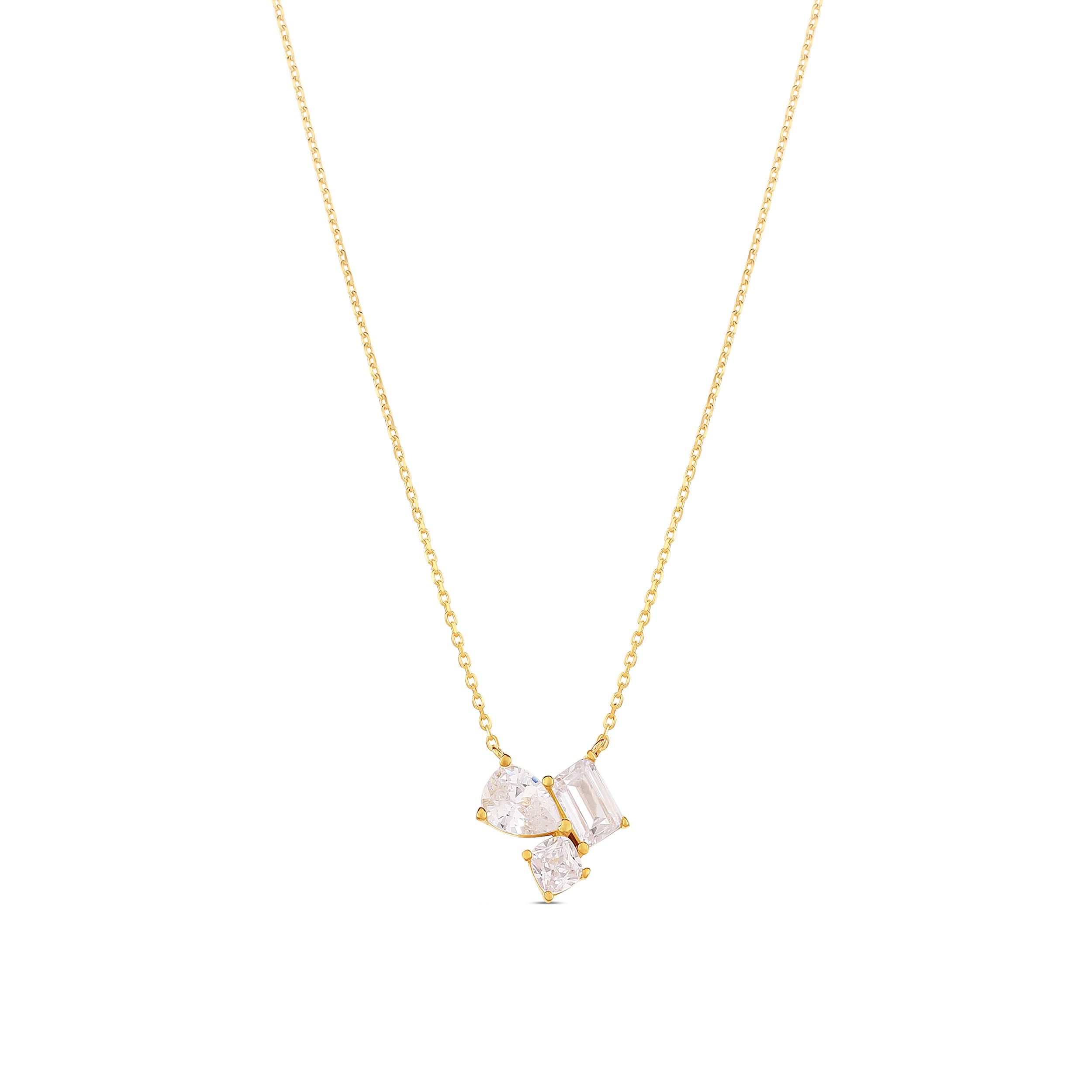 Elegant, modern and chic, this necklace features a trio of different shape sparkling crystals set in a simple sterling silver setting. Perfect statement necklace sure to become a treasured piece in any jewelry collection! Super Chic on its own or layered.
