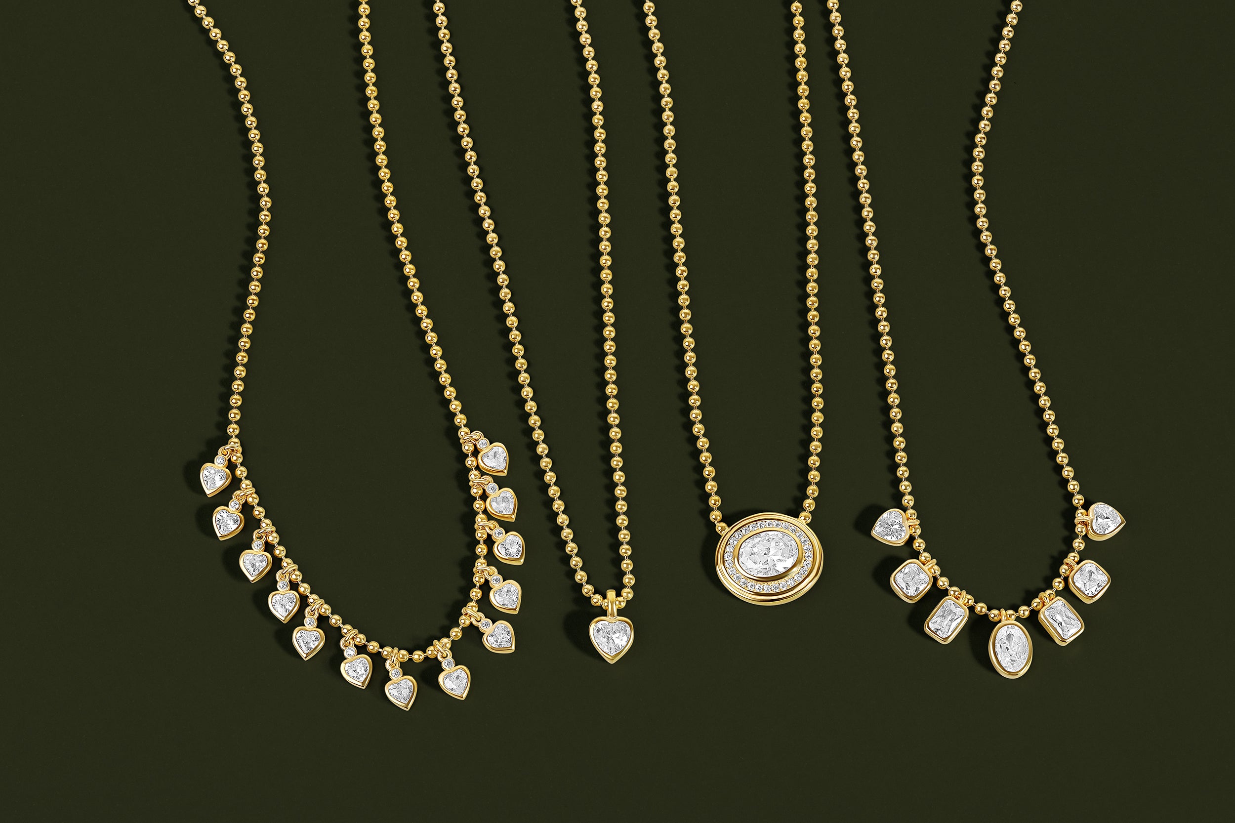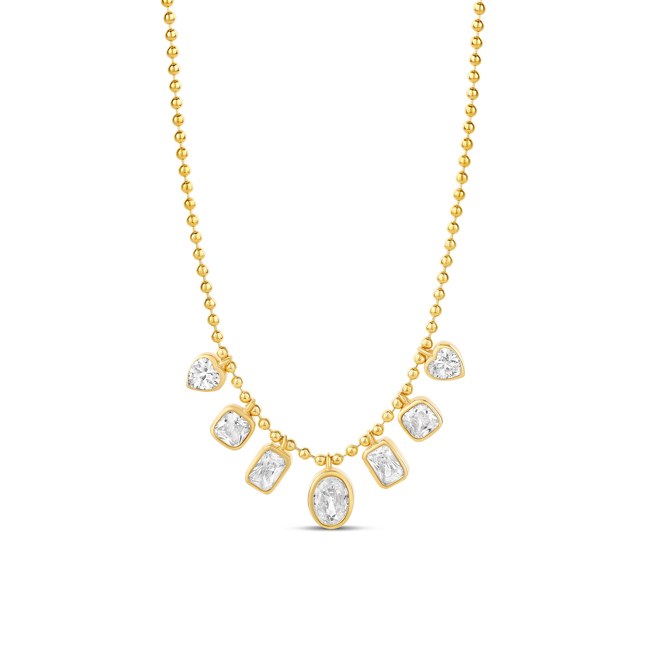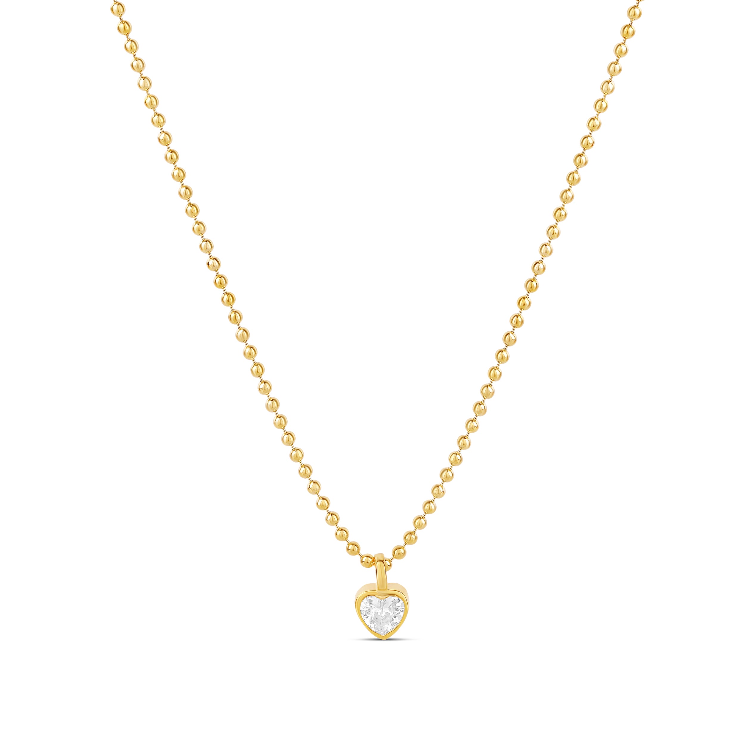 Bezel Heart on a Beaded Ball Chain