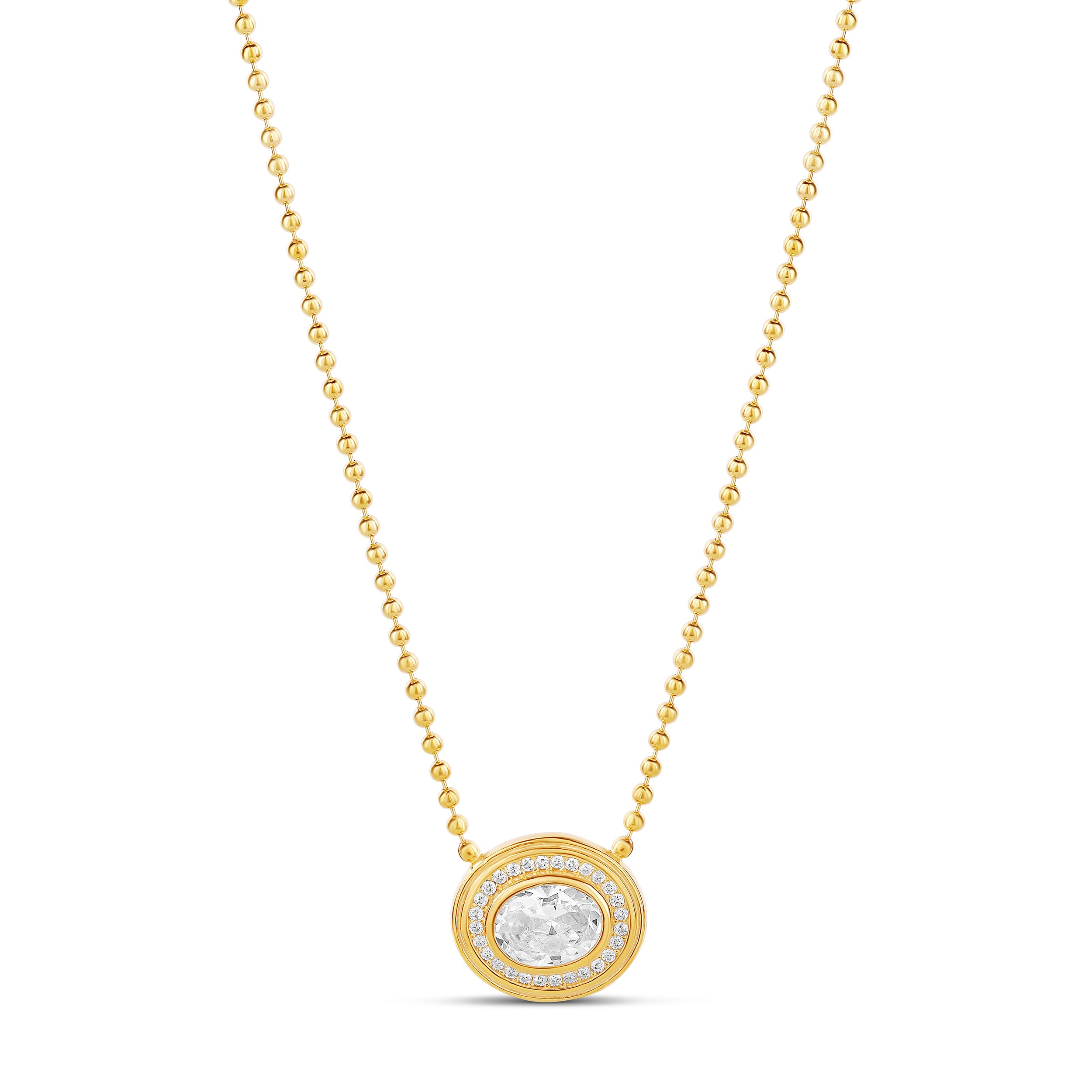 Oval Pendant on a Beaded Ball Chain