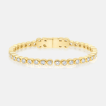 Introducing the Round Bezel Open Bangle, a gorgeous everyday accessory that is a must-have in any jewelry box. Its effortless design allows for easy on and off, making it the perfect addition to any bangle stack. Elevate your style with this versatile and timeless piece.