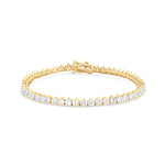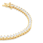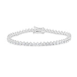 This traditional three prong 2mm round tennis bracelet comprises an essential part of any jewelry collection. Its sophisticated, timeless style exhibits sparkling cubic zirconia stones in a refined 3-prong setting. Suitable for any special event, or for everyday wear. This bracelet makes a stylish addition to any stack.